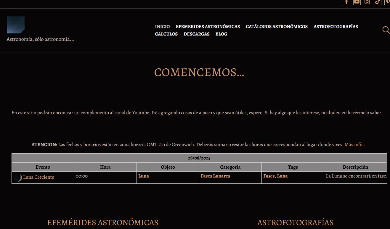 | 08/11/2025 | Evento | Hora | Objeto | Categoría | Tags | Descripción | 00:00 | La Luna se encontrará en fase... |