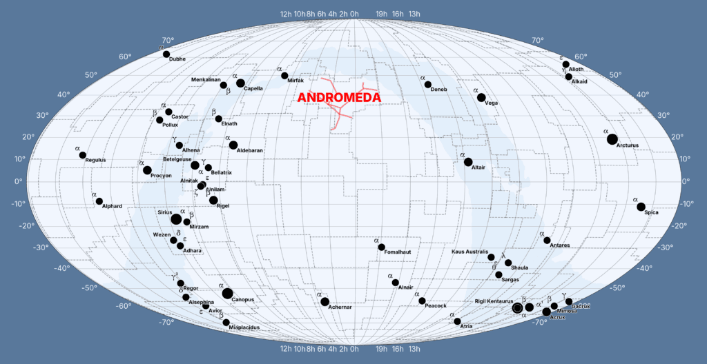 | And | Andromeda (Andrómeda) | Andromedae | Norte | Antiguo (Ptolomeo) |