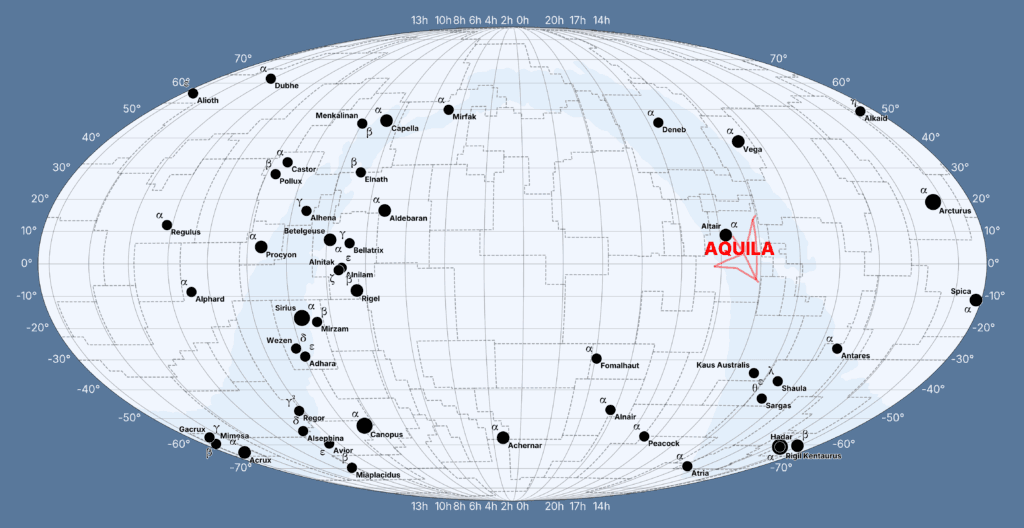| Aql | Aquila (Aguila) | Aquilae | Norte | Antiguo (Ptolomeo) |