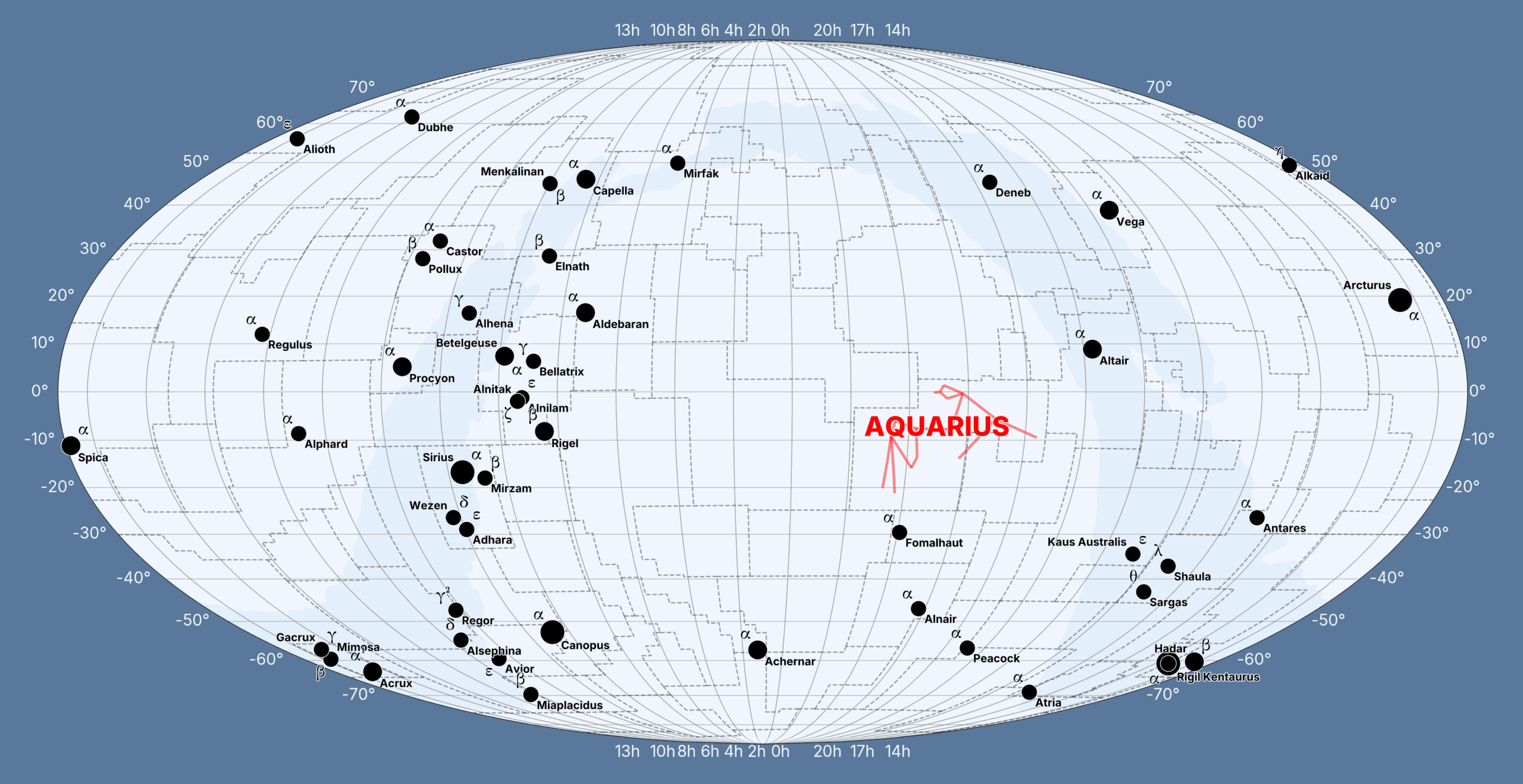 | Aqr | Aquarius (Aguador) | Aquarii | Sur | Antiguo (Ptolomeo) |