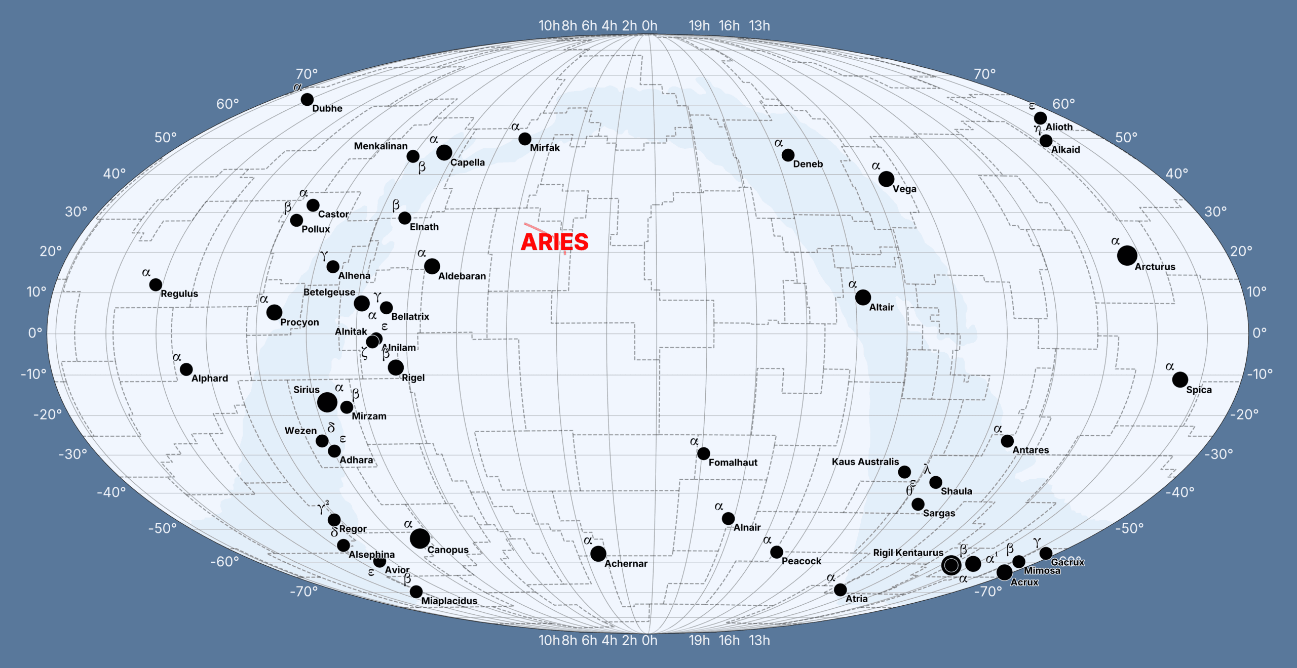 | Ari | Aries (Carnero) | Arietis | Norte | Antiguo (Ptolomeo) |