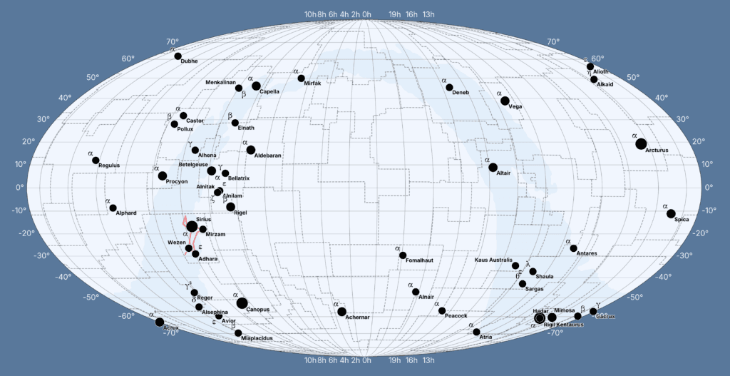 Su estrella más brillante es Sirius, de magnitud visual -1.09.