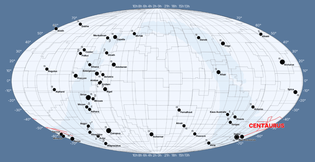 Es la constelación nro 9 por su tamaño. Ocupa un total de 1060.42 grados en el cielo, equivalente al 2.6% de éste.Su estrella más brillante es Rigil Kentaurus, de magnitud visual 0.14.