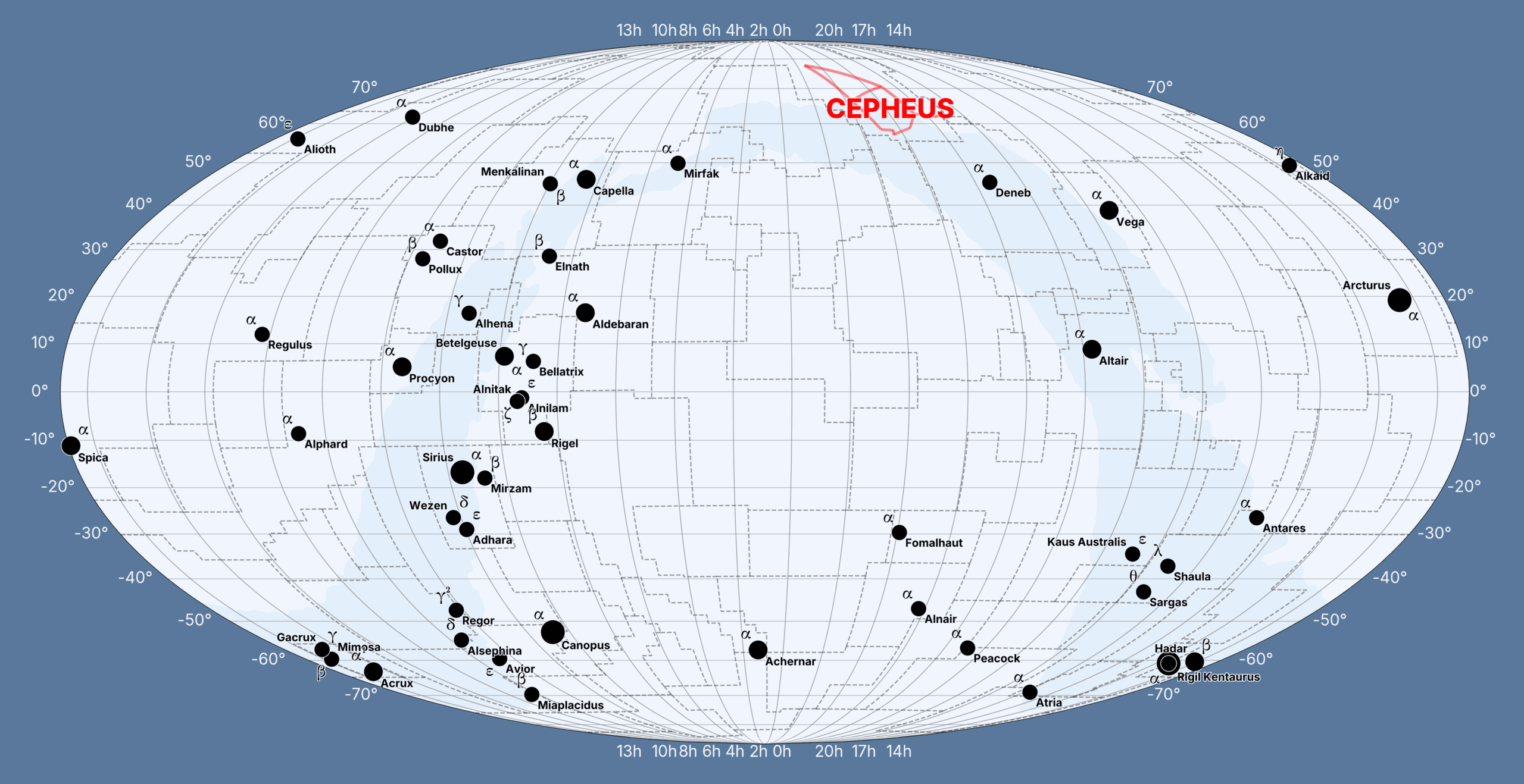 | Cep | Cepheus (Cefeo) | Cephei | Norte | Antiguo (Ptolomeo) |