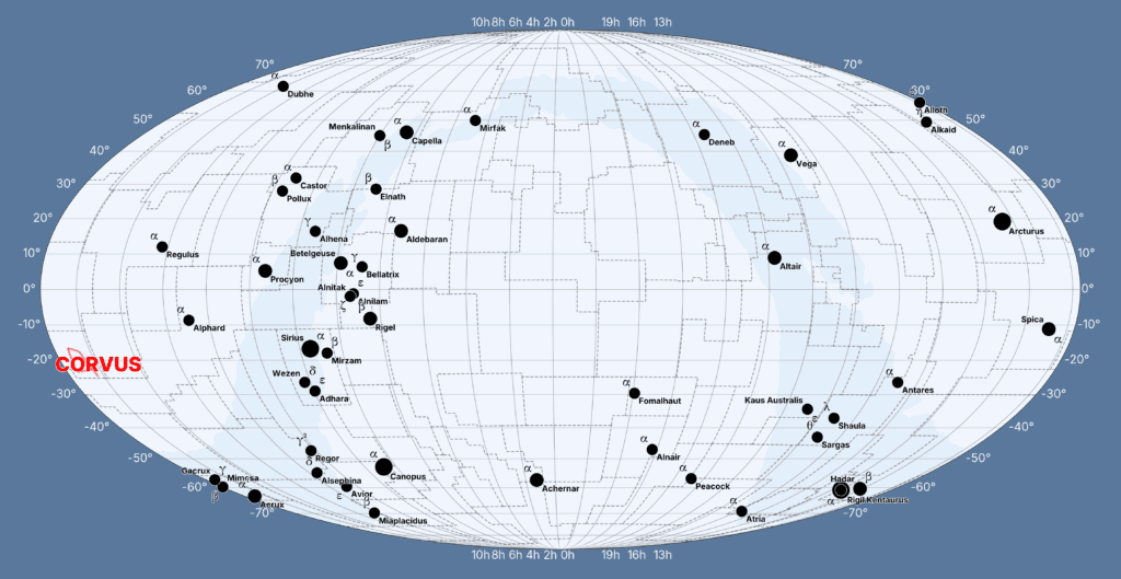 | Crv | Corvus (Cuervo) | Corvi | Sur | Antiguo (Ptolomeo) |