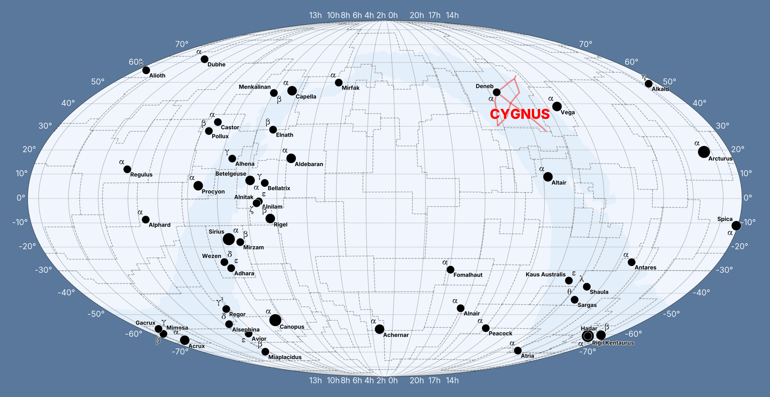 | Cyg | Cygnus (Cisne) | Cygni | Norte | Antiguo (Ptolomeo) |