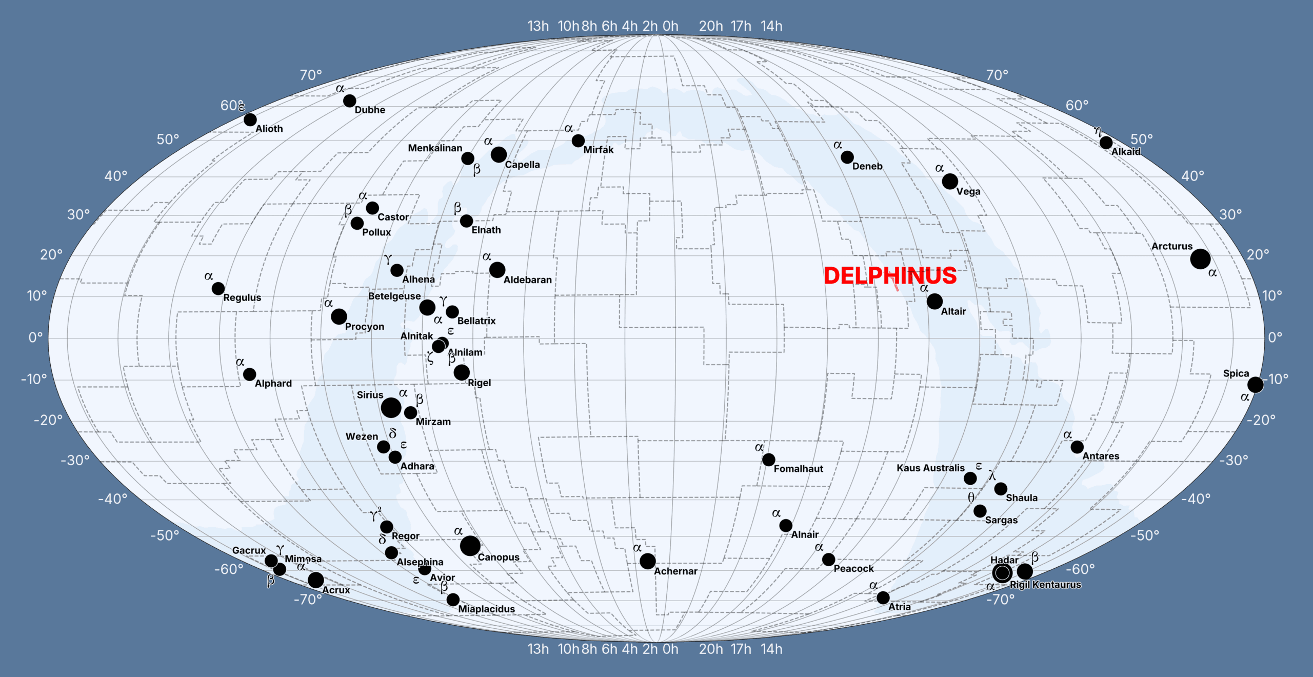 | Del | Delphinus (Delfín) | Delphini | Norte | Antiguo (Ptolomeo) |