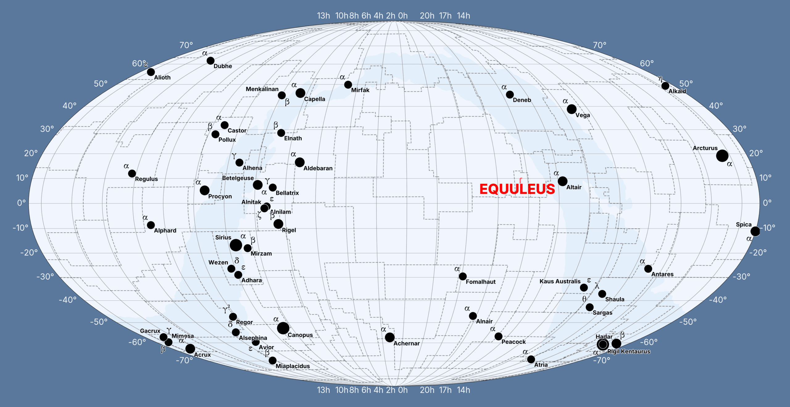 | Equ | Equuleus (Caballo) | Equulei | Norte | Antiguo (Ptolomeo) |