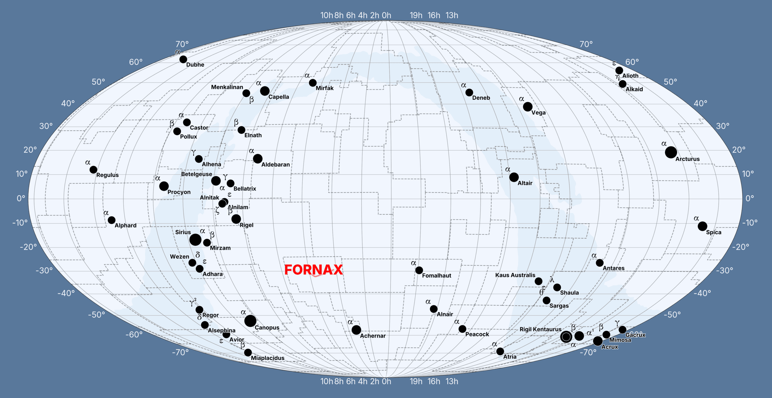 | For | Fornax (Horno) | Fornacis | Sur | Moderno (Lacaille) |