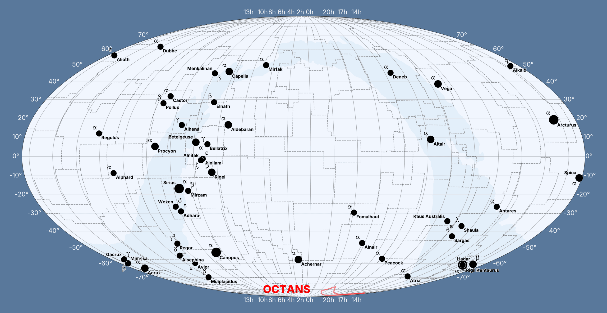 | Oct | Octans (Octante) | Octantis | Sur | Moderno (Lacaille) |