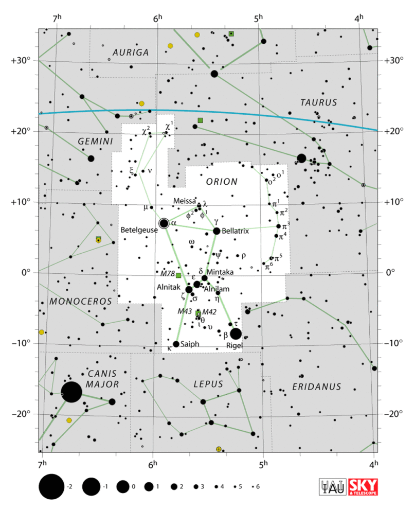 | Ori | Orion (Orión) | Orionis | Norte | Antiguo (Ptolomeo) |