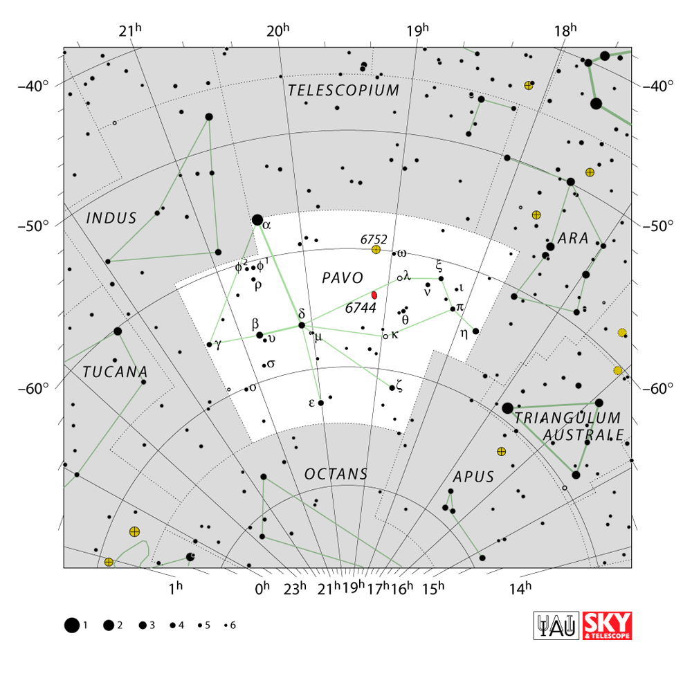 Su estrella más brillante es Peacock, de magnitud visual 1.86.