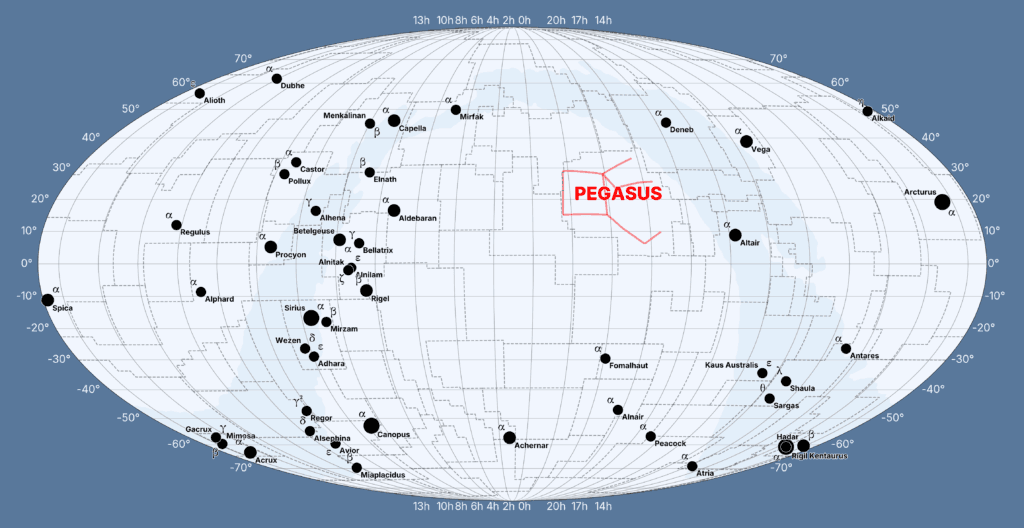 | Peg | Pegasus (Pegaso) | Pegasi | Norte | Antiguo (Ptolomeo) |