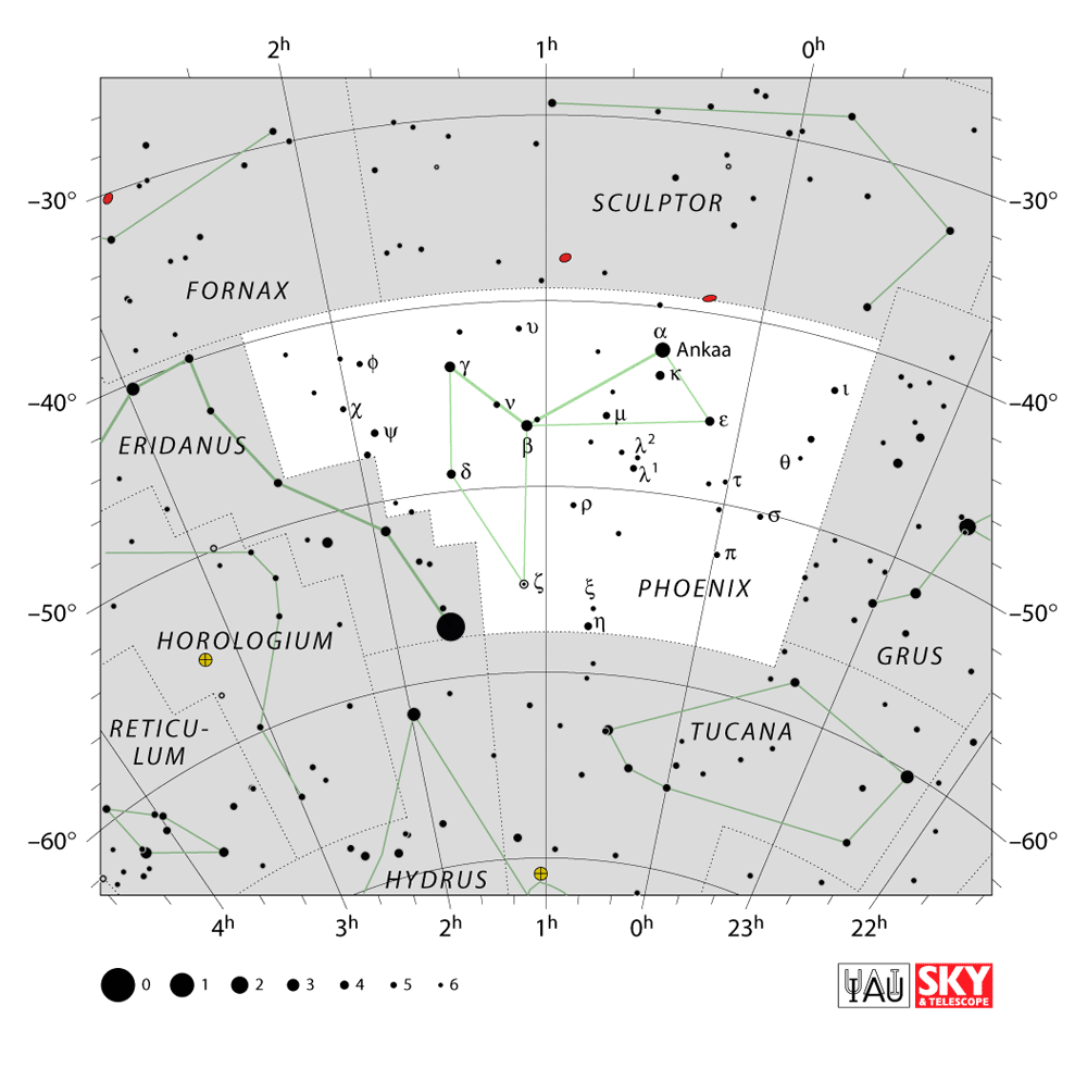 | Phe | Phoenix (Ave Fenix) | Phoenicis | Sur | Moderno (Keyser y Houtman) |