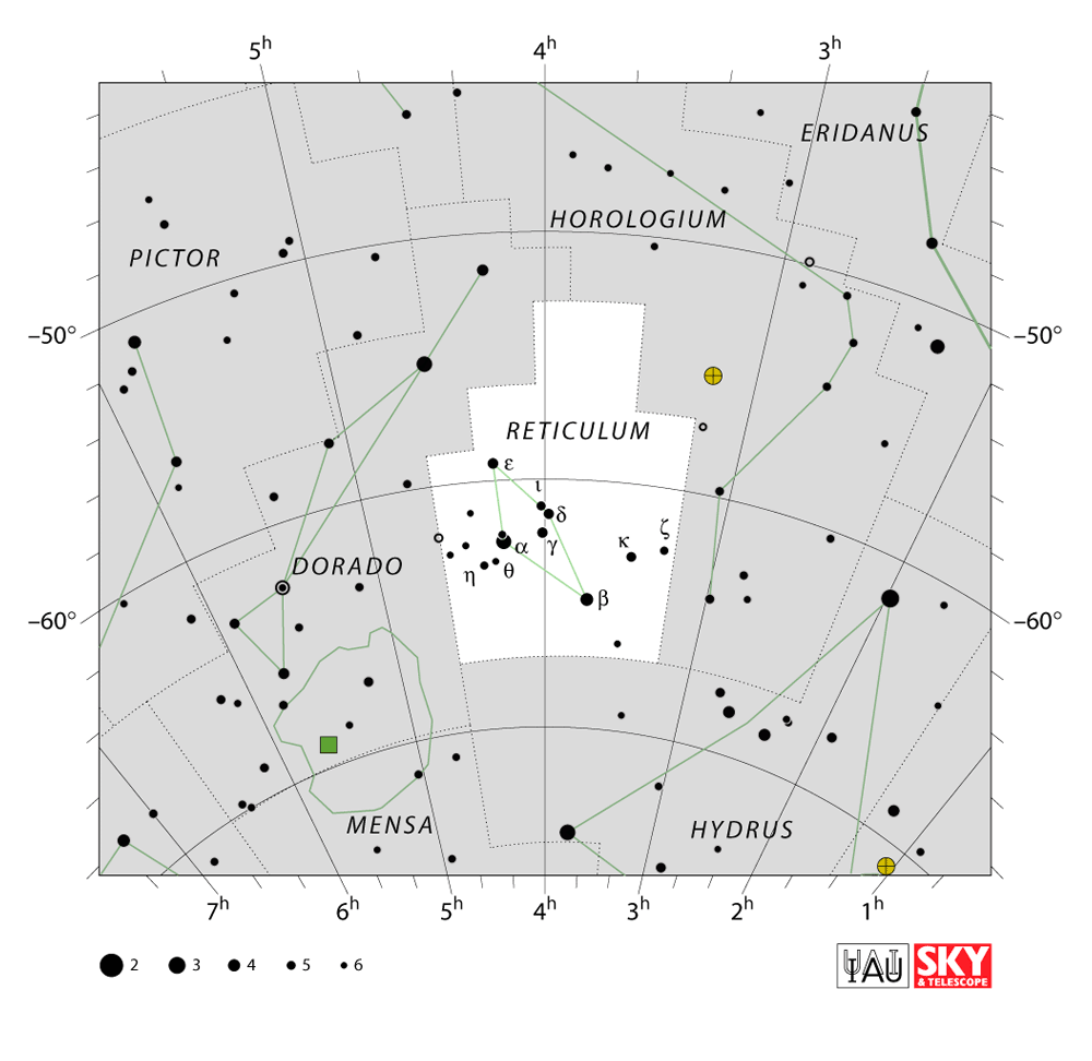 | Ret | Retículum (Retículo) | Reticuli | Sur | Moderno (Lacaille) |