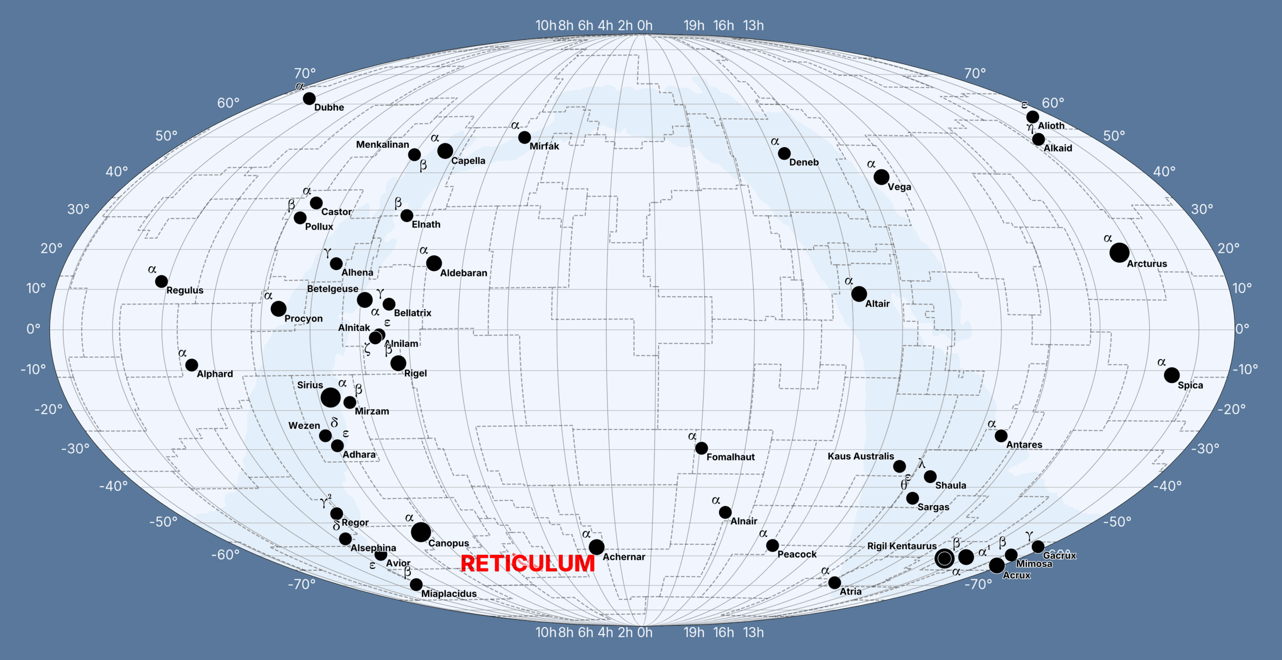 | Ret | Retículum (Retículo) | Reticuli | Sur | Moderno (Lacaille) |