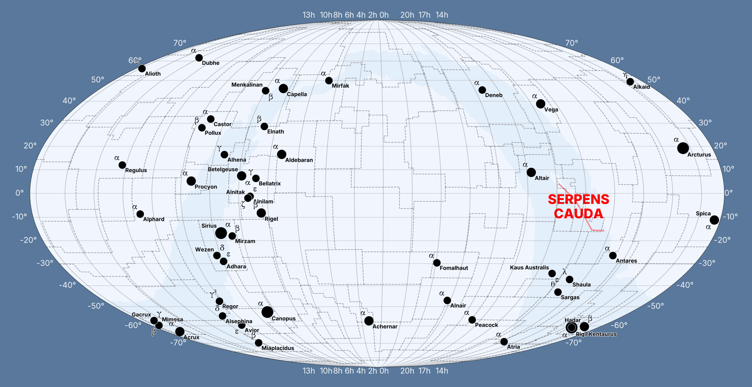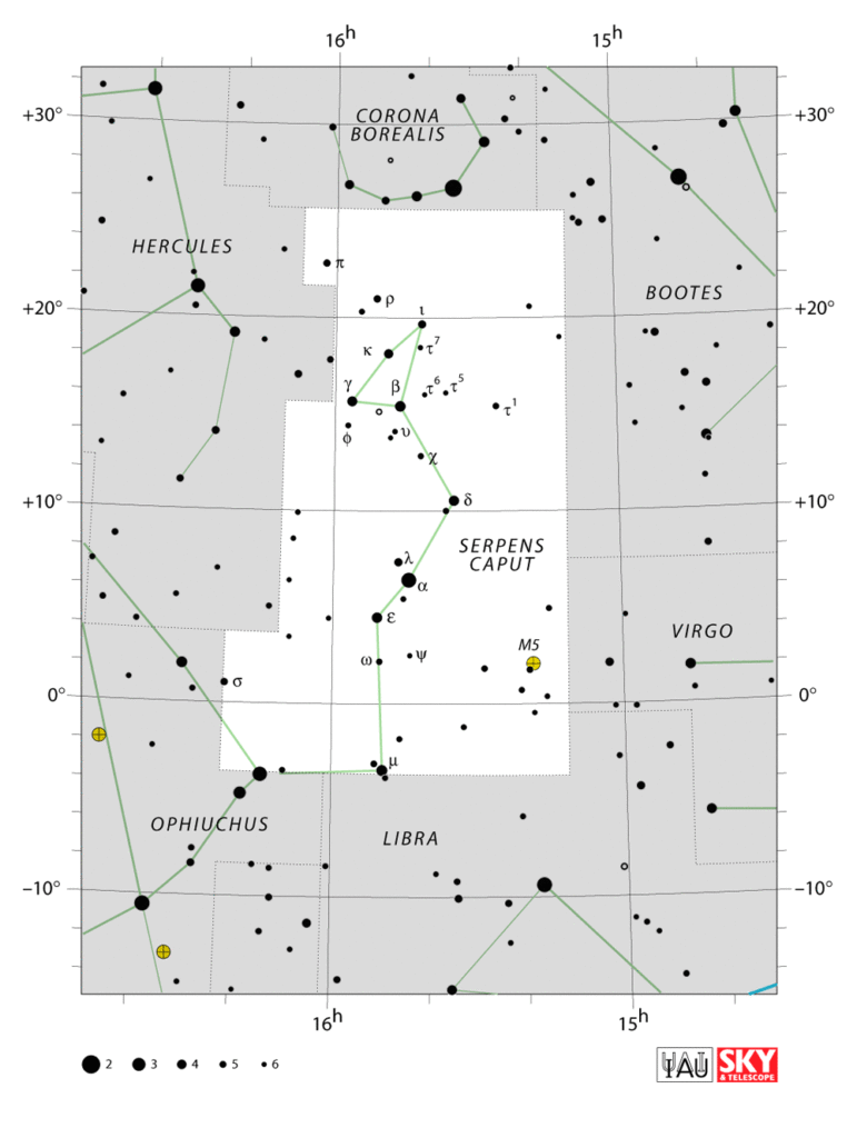 | Ser | Serpens (Serpiente) | Serpentis | Norte | Antiguo (Ptolomeo) |