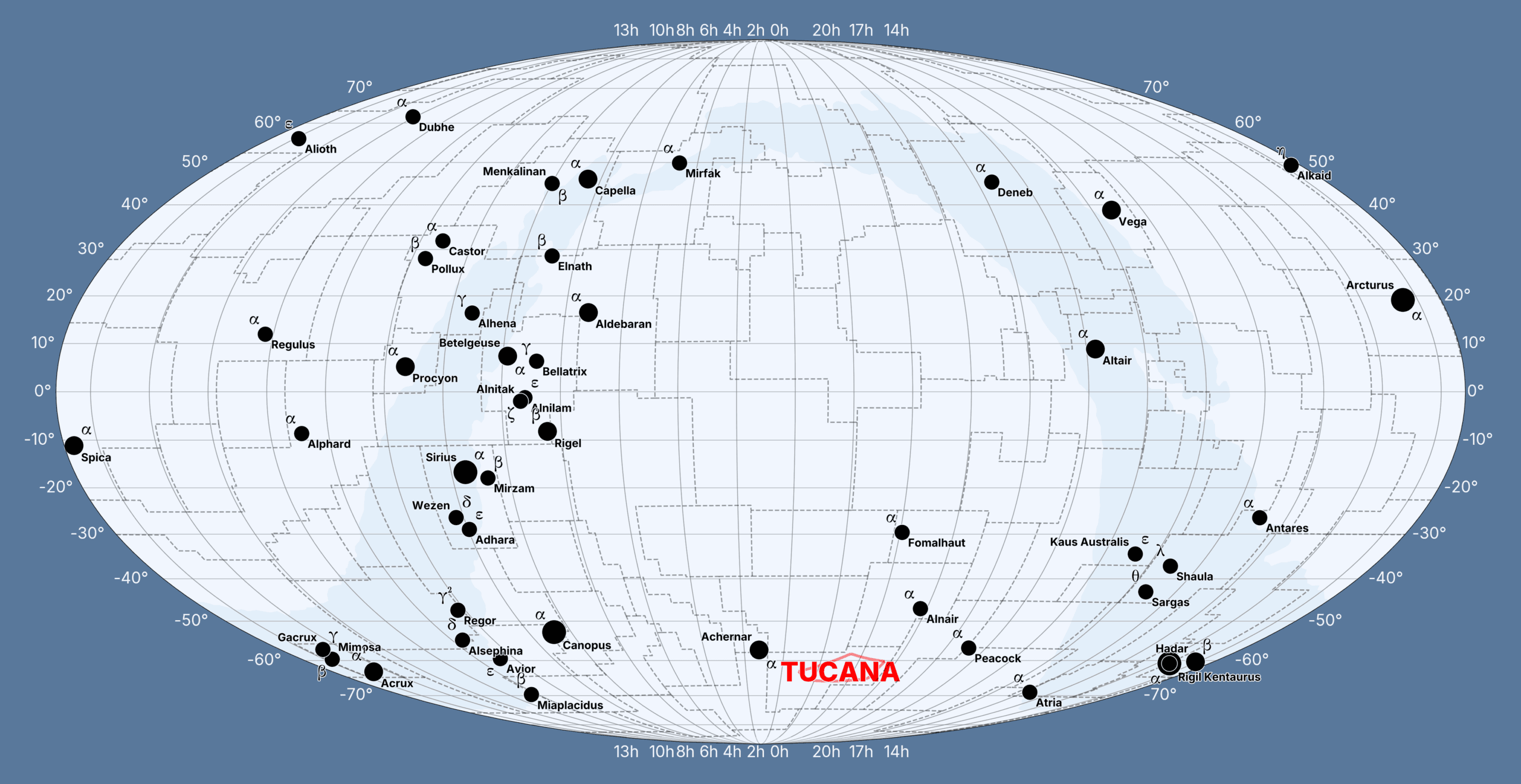 | Tuc | Tucana (Tucán) | Tucanae | Sur | Moderno (Plancius) |