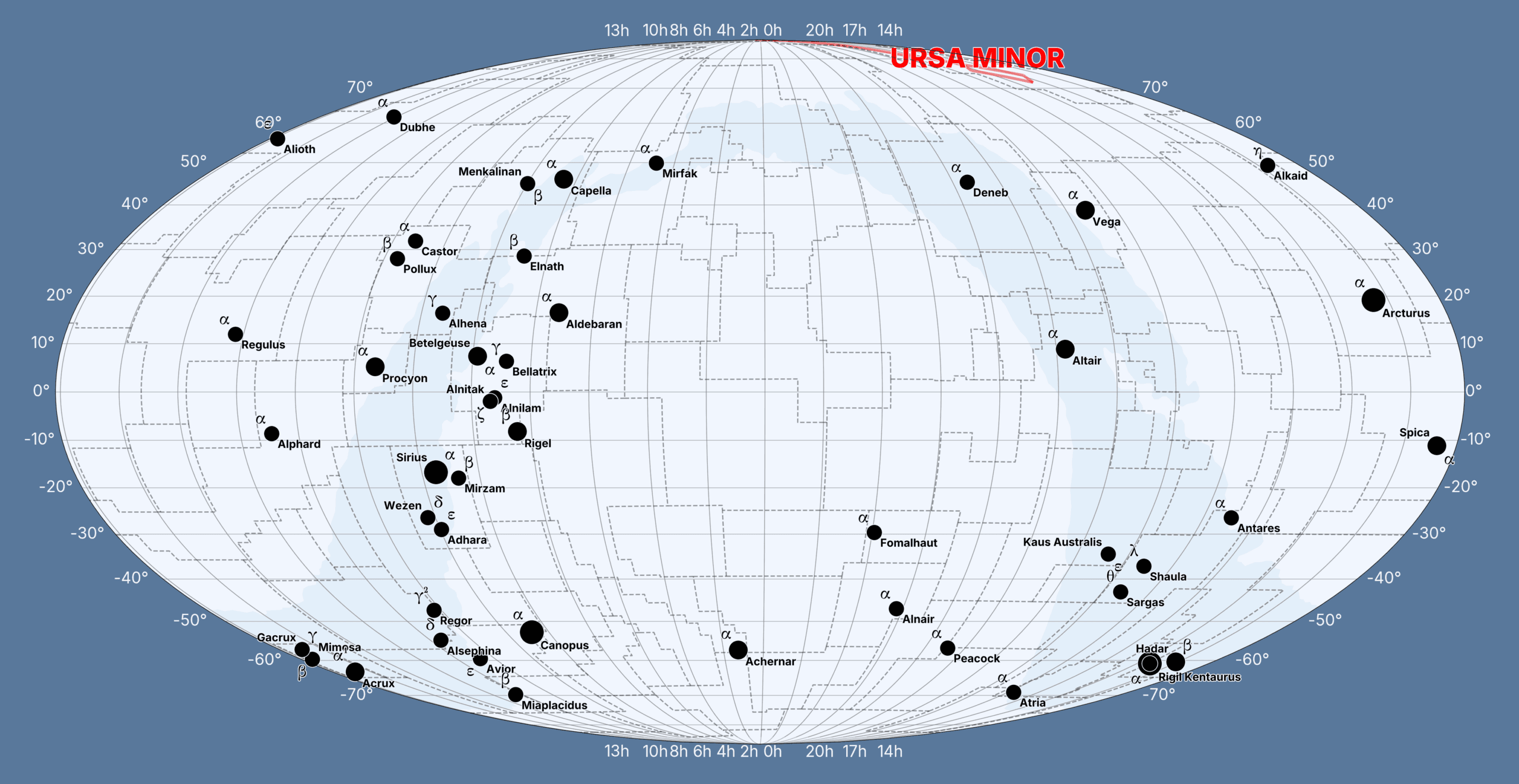 | UMi | Ursa Minor (Osa Menor) | Ursae Minoris | Norte | Antiguo (Ptolomeo) |