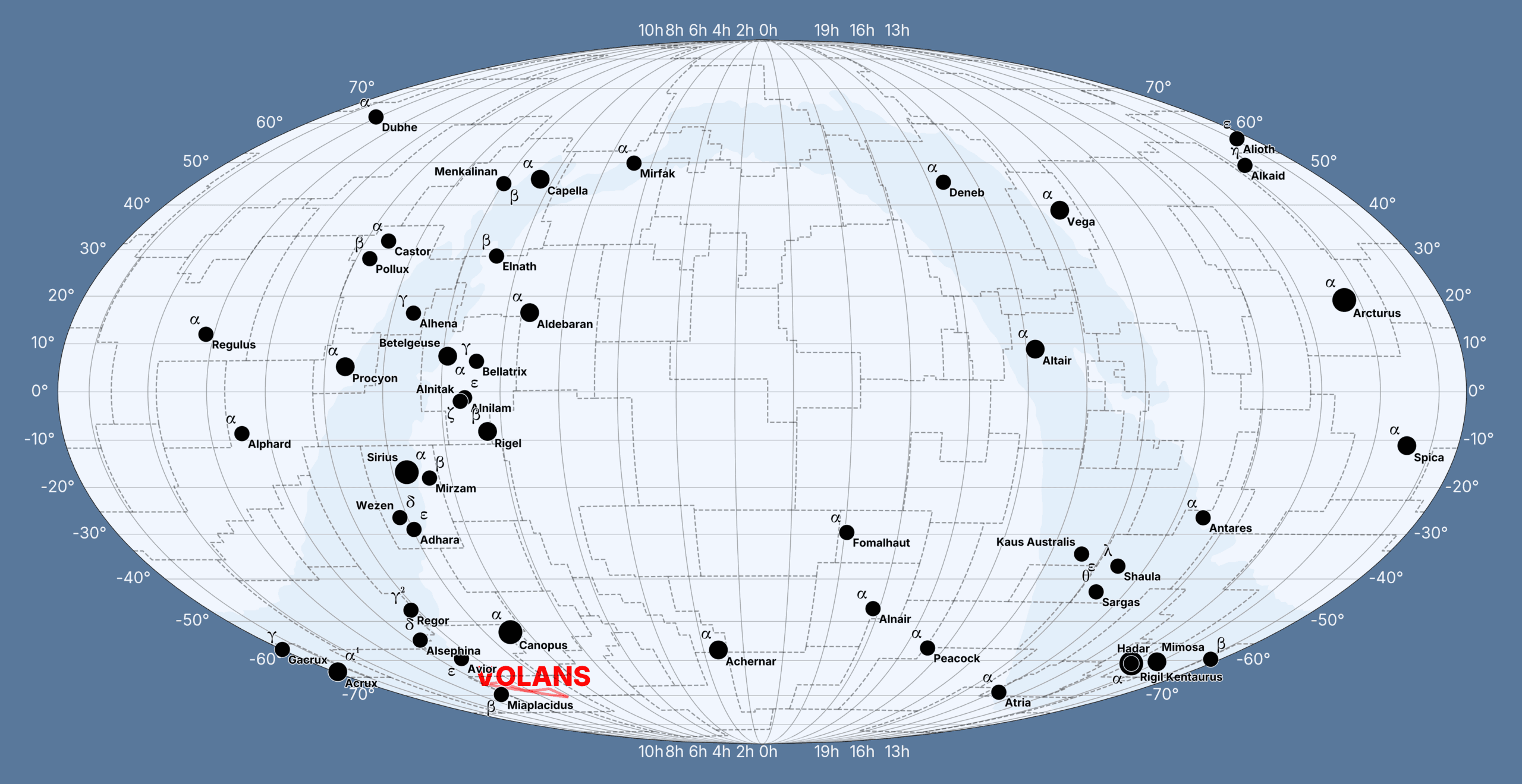 | Vol | Volans (Pez Volador) | Volantis | Sur | Moderno (Plancius) |